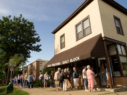 Why the crowd in front of the shop? It was Scrap Tamer Plus Marti and Me signup day. Word has it that the line started at 7 AM. Sign up started at 9:30. Fun to see all the quilters with their chairs, coffee, donuts etc. Scrap Tamers Club Plus meets the 3rd Saturday of each month. The first meeting will be Saturday, September 17. We have 3 sessions scheduled--there are still a few openings in the 1:00 session. I think it will be a lot of fun this year as we're combining the From Marti and Me club with our traditional Scrap Tamers club--2 clubs for the price one ! I'm all about learning as many things about quilting as you can! And the Marti and Me club offers some fun new techniques and information about using her well designed tools and rulers.