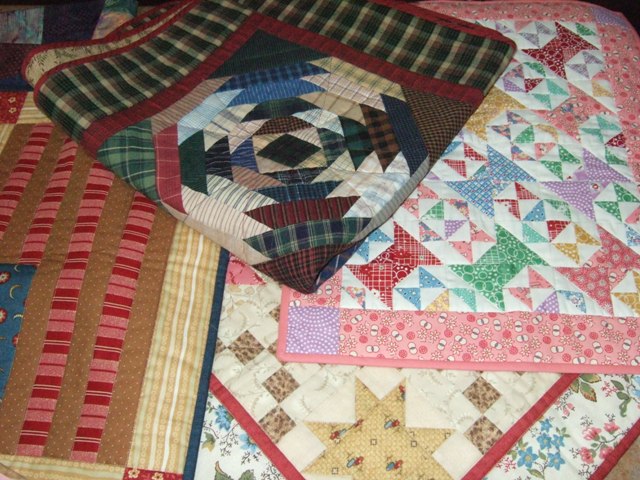 We had some fun show and tell. Debbie brought the quilt she's finishing for our staff quilt show "Vintage Glad's Quilts". She used our Shady Grove pattern for her quilt. If you haven't heard about the upcoming show, here's the scoop. Staff members who wanted to participate selected a pattern from a list of the first 24 Glad Creations patterns and made an updated version of the quilt in current fabrics. The quilts will be on display at the shop January 1 – 11, 2013. We're pretty excited to see all of these quilts hanging. We'll be getting out the original versions of the quilts too.